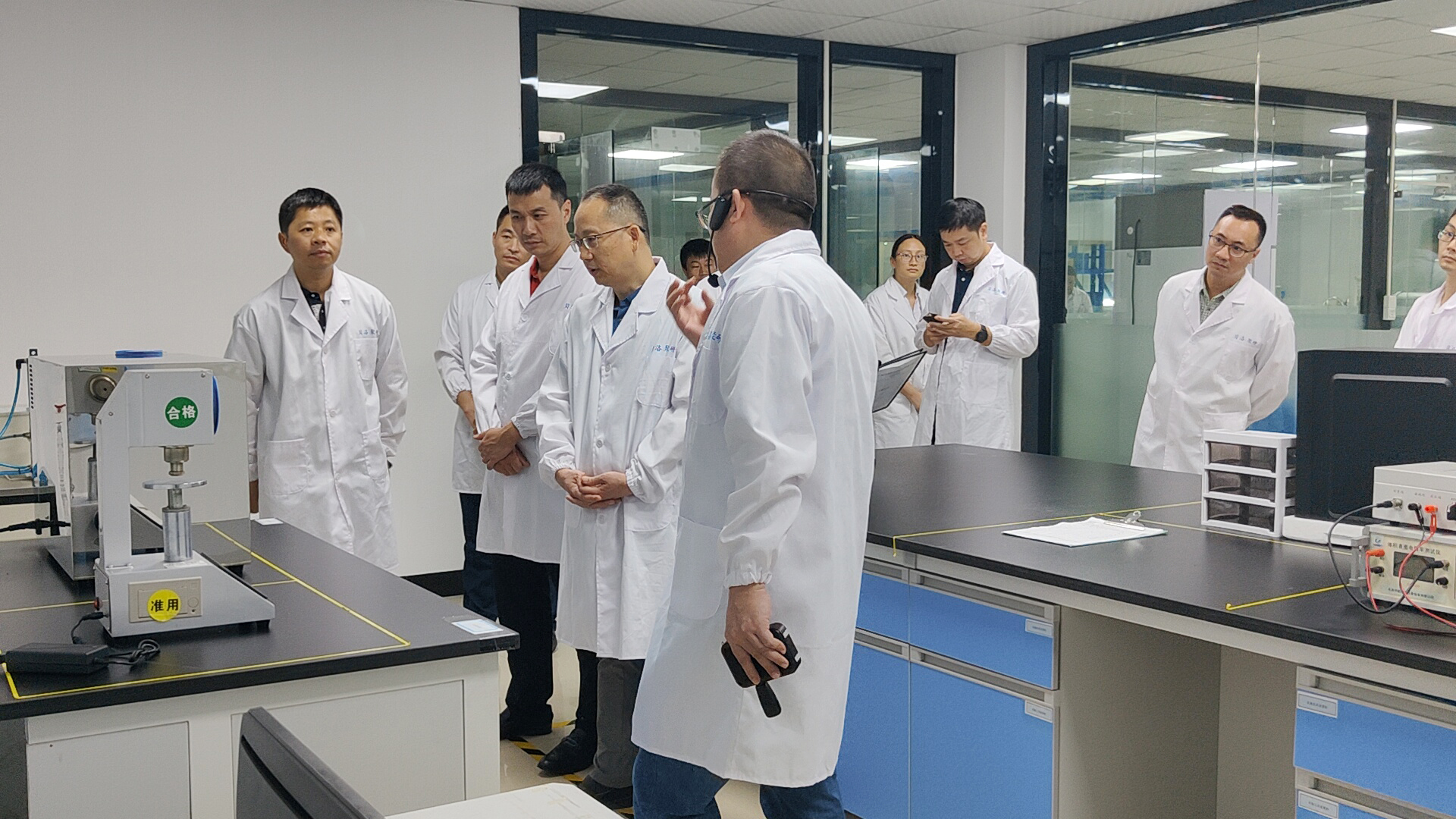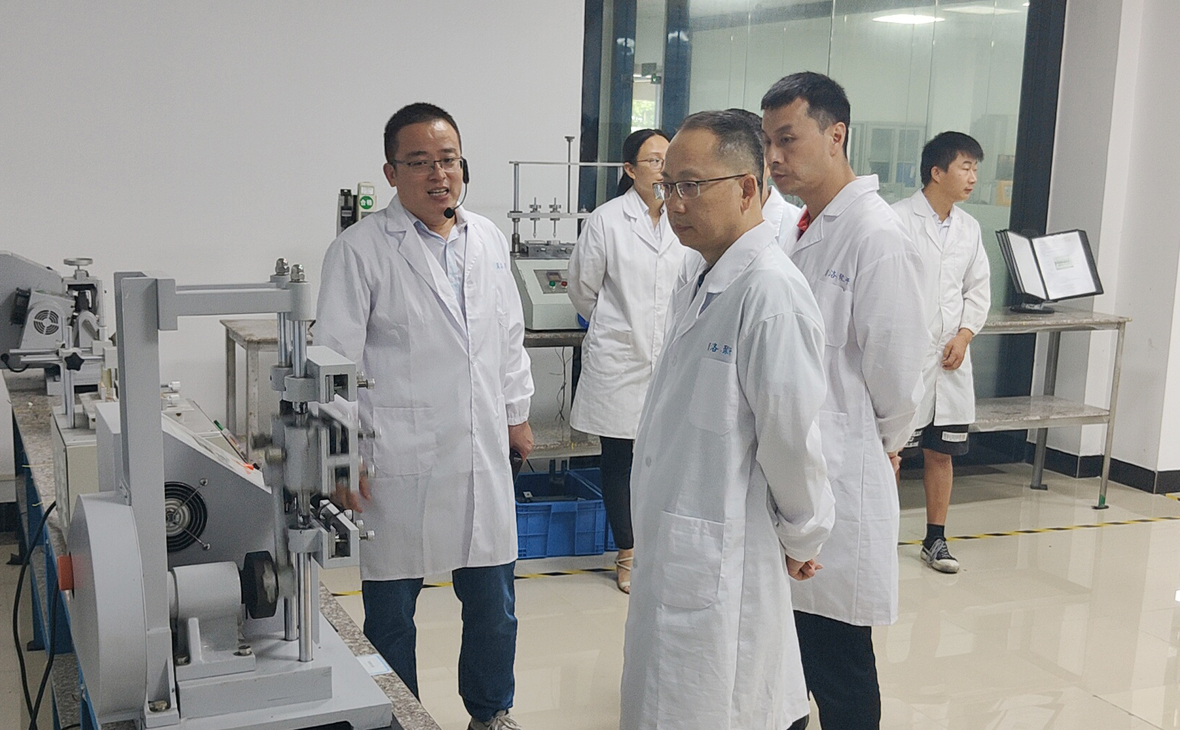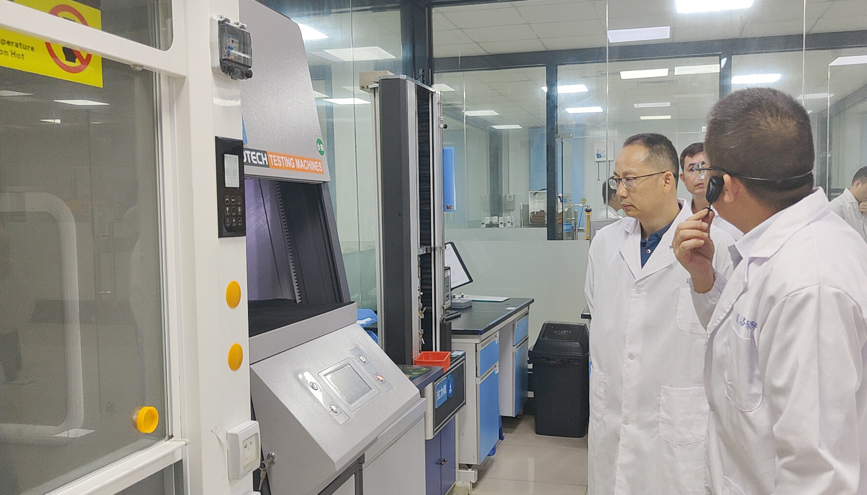 接著,企業(yè)代表為領導一行詳細講解了貝洛新材耗資超千萬打造的CNAS國家認證實驗中心。實驗中心設有原料實驗室、動態(tài)實驗室、低溫及電化學實驗室、化學分析室、RoHS檢測室、測量室、臭氧及燃燒實驗室、熱老化實驗室和橡膠工藝室,配備了儀器設備百余套,含蓋原料檢測、配方驗證、尺寸測量以及樣品測試,可進行電器、汽車、連接器等行業(yè)各類標準實驗,獲得領導一行對企業(yè)創(chuàng)新、研發(fā)技術的贊賞和肯定!