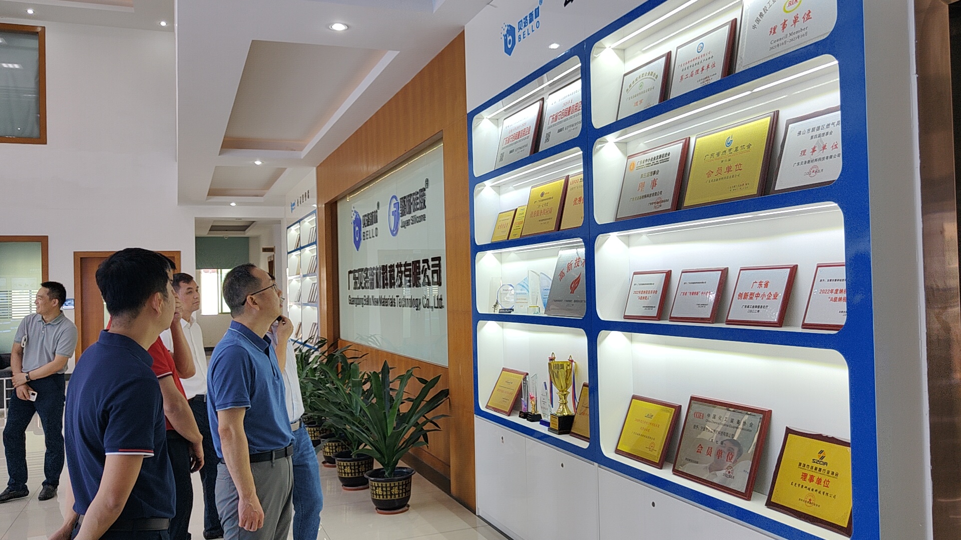 2023年9月12日(星期二)下午,東莞市工信局黨組書記、局長肖必良,辦公室主任王森,信息產業(yè)與軟件科科長杜振華,增資擴產專班負責人謝宇鵬,高埗鎮(zhèn)委副書記、鎮(zhèn)長謝偉良,鎮(zhèn)委委員陳志良,鎮(zhèn)經濟發(fā)展局廖進球等領導一行蒞臨貝洛新材調研指導工作,貝洛新材董事長蘇會敏,發(fā)展中心總監(jiān)姚芳偉等企業(yè)高管對領導一行的到來表示熱烈的歡迎。