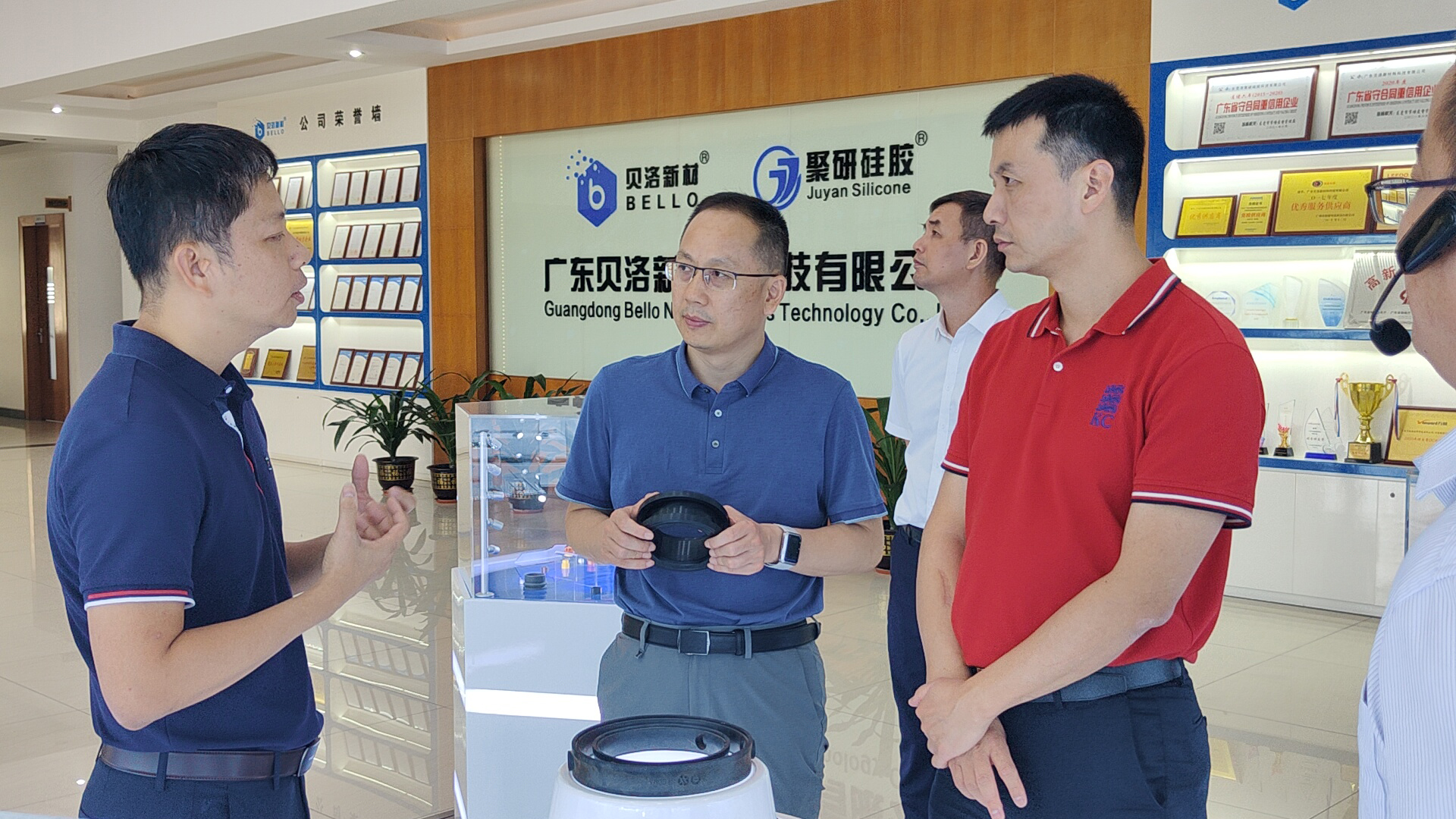 貝洛新材企業(yè)代表為領導一行介紹了企業(yè)展廳。走進展廳,映入眼簾的是貝洛新材聚焦的4大領域 - 汽配、連接器、廚衛(wèi)電器及新能源領域千余款產品,企業(yè)代表對每個領域的技術特點以及功能參數進行了介紹,其中重點介紹了貝洛新材生產的燃氣熱水器進出水閥密封件和輪胎壓力監(jiān)測系統(tǒng)密封件產品的研產優(yōu)勢,并闡明對新能源汽車及工業(yè)連接器密封件領域的階段性成果和未來目標。