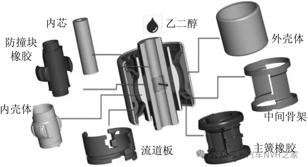 ▲ 液壓襯套結(jié)構(gòu)(汽車NVH之家)