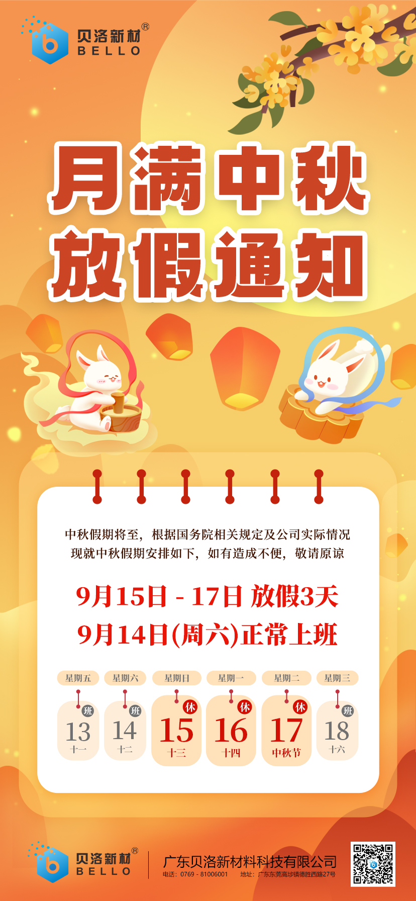 貝洛中秋放假通知,如造成不便,敬請?jiān)?/h2> 2024-09-13 11:09:14