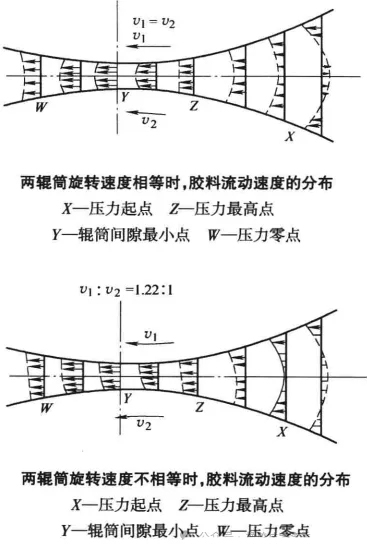 膠料的流動狀態(tài)主要取決于壓延輥筒的旋轉(zhuǎn)速度: