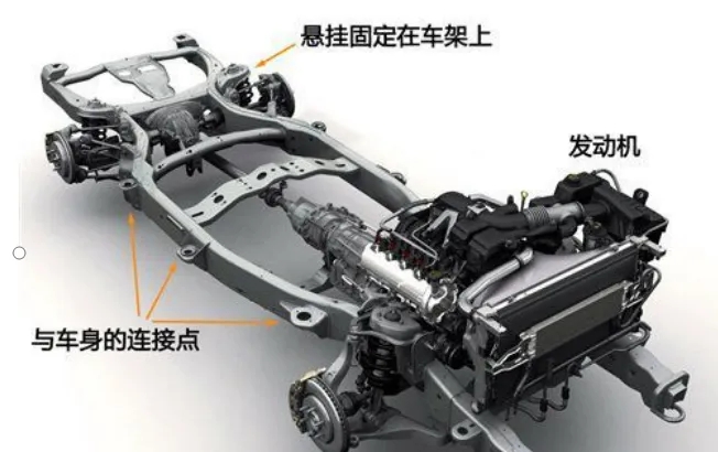 非承載式像卡車,大梁扛一切;承載式像轎車,外殼就是骨架,輕、省空間,但撞了修起來(lái)肉疼。