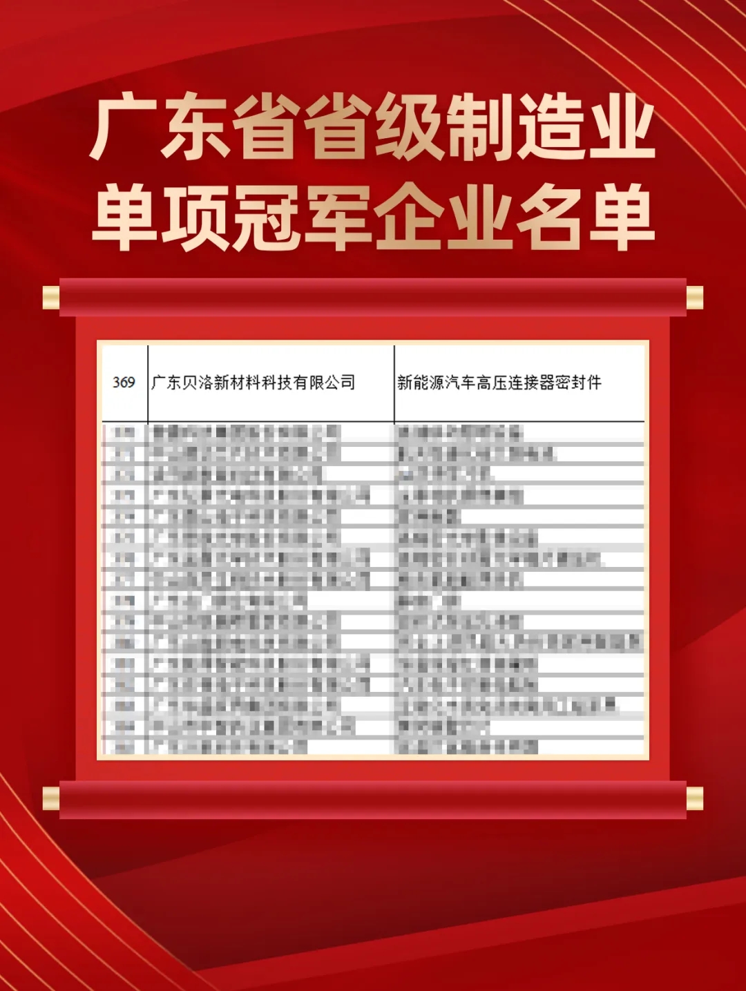 2025年12月31日,廣東省工業(yè)和信息化廳發(fā)布了《2025年廣東省省級(jí)制造業(yè)單項(xiàng)冠軍企業(yè)及第一批復(fù)核企業(yè)通過名單的公示》,廣東貝洛新材料科技有限公司成功入選省級(jí)制造業(yè)單項(xiàng)冠軍企業(yè)。