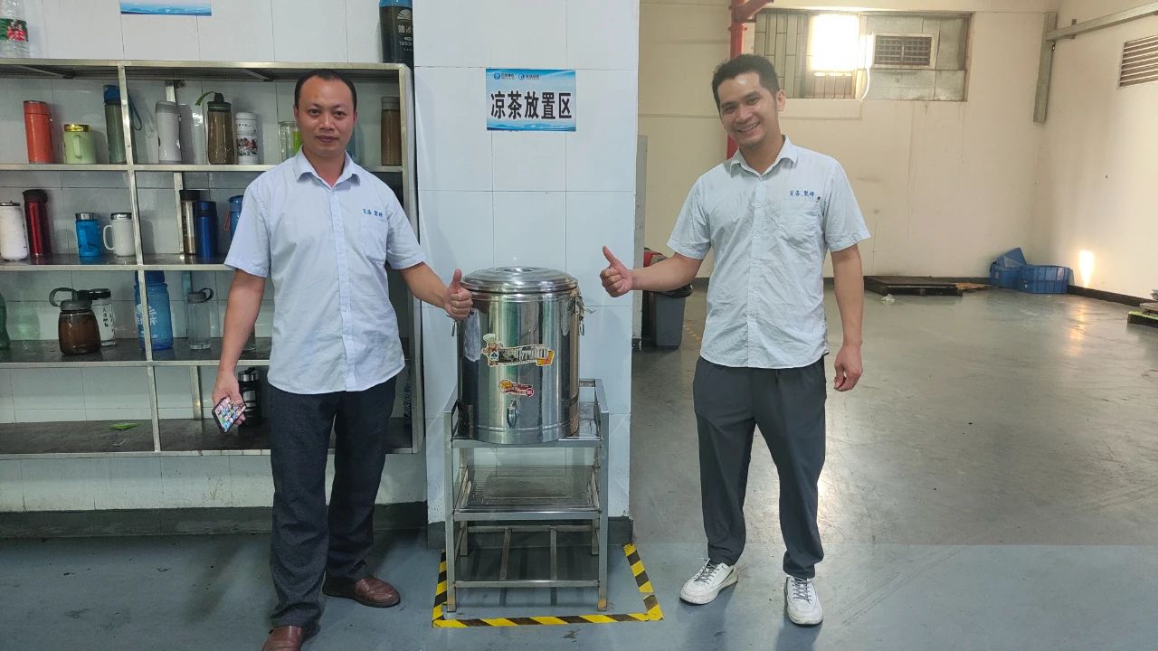 涼茶用純中藥配方熬制,解暑效果好,味道清甜!員工們紛紛表示,雖然天氣悶熱難受,卻能感受到公司對(duì)員工的心意,既暖心又清涼。