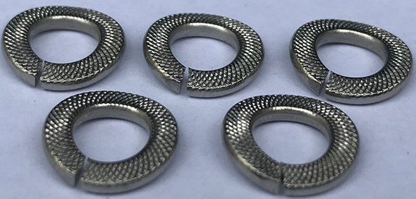 早期為了解決這個(gè)問題,彈簧墊圈就出現(xiàn)了。彈簧墊圈由于有預(yù)張力,在螺母壓緊彈簧墊圈后,在預(yù)張力的作用下,螺母內(nèi)三角形的螺扣與螺栓三角形的螺扣的一側(cè),就緊緊的貼在一起,在摩擦力的作用下,螺母就不再出現(xiàn)松動(dòng)的情況了。